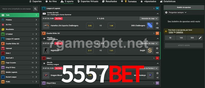 O 5557bet oferece uma grande seleção de opções de apostas em e-sports com probabilidades competitivas